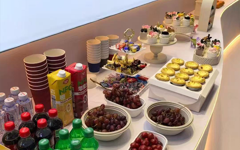 Amid the intense business negotiations, we carefully set up an exclusive tea break area, where we entertained visiting clients with exquisite pastries, freshly brewed coffee and featured teas. Under the warm yellow lighting, everyone sat around, holding drinks and engaging in conversations—from technical details to market trends, and from product demands to future cooperation. The relaxed atmosphere made the exchange of ideas more lively, and mutual trust quietly deepened over delicious food and the aroma of tea. Many clients smiled and said that such tea break moments not only relieved the tiredness of exhibition visits, but also added a touch of warmth and rapport to business discussions.
